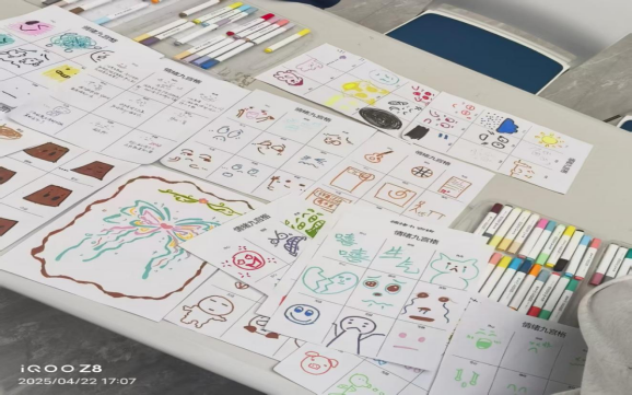第一环节让同学们画出自己的喜怒哀乐,每个人对开心快乐都有着不同的理解,他们画出自己心中的开心快乐,可以更好的释放自己内心的情绪。减少自己心中的不开心,可以让人与人之间的相处变得更加融洽。