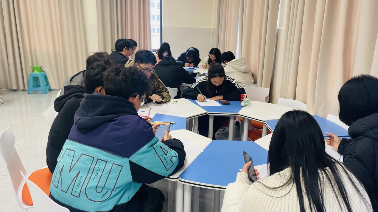 活动的尾声是温情而富有创造力的“共同创作”环节。同学们以小组为单位,首先用画笔回顾并描绘了个人在活动中的感受与收获。随后,各组将成员的个人画作巧妙整合,共创出一幅承载集体智慧与情感的团队作品。在作品分享中,“拯救孤独的小孩”、“偶然的一天”等富有深意的命名,以及小组代表们真诚的阐述,无不彰显着同学们在此次活动中的深度思考与深厚情谊。