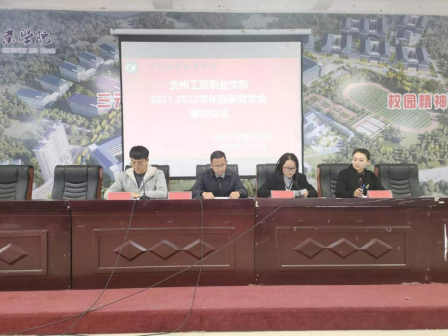 首先,学校就业办主任、学工处副处长杨琴宣读了2021-2022学年度国家奖学金获奖学生名单,Ky开元共计一名学生获得中职国家奖学金,每人6000元。四名学生获得高职国家奖学金,每人8000元,出席仪式的各位领导向获奖同学颁发获奖证书。