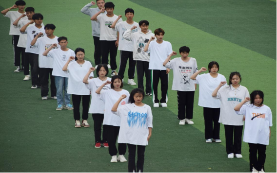 “青春律动”校园操比赛暨散学典礼在蒙蒙小雨中画上了圆满的句号。(通讯员:卜光听)