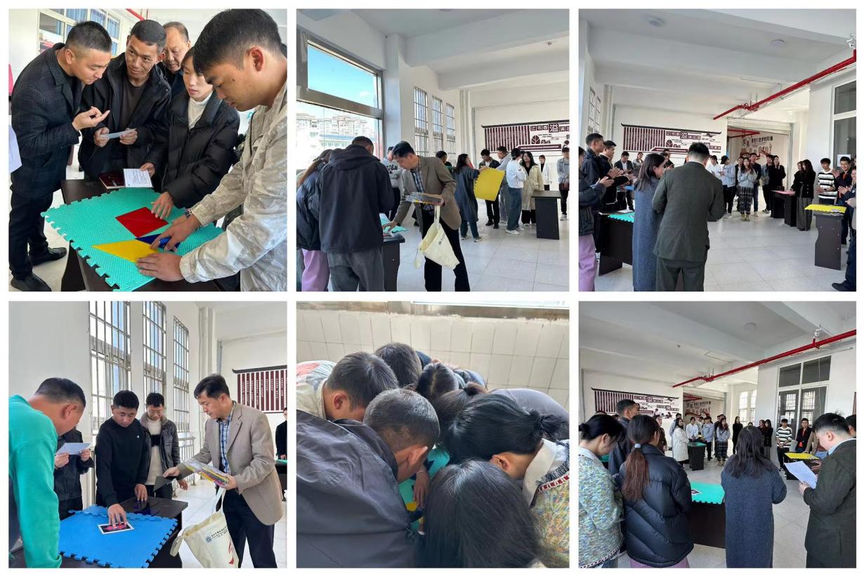 下午14:00技师学院相关行政管理人员和任课教师来到明德楼阶梯教室外参加教研活动。教务科科长周婧主持活动,并把参加教研的老师分成了7个小组,汤哲将教研培训任务书及培训道具——七巧板分发给了各小组。强调每组需认真研读任务书后,按照任务书要求完成任务,任务时间为40分钟。当任务指令下达后,各小组为了在指定时间内完成任务忙的不亦乐乎——你争我抢、竞相争夺的场面精彩纷呈,激烈比拼的气氛和拼尽全力的每一位老师,使得教研现场热闹非凡。当大家都还在千方百计、抓耳挠腮、你夺我抢时……时间已到。这时汤哲请各小组选出一位成员宣读本组的任务书,让大家相互了解任务书的内容,才发现任务书中的规律和要求。但是因为各小组缺乏沟通及合作意识,更没有发挥好核心领导力的作用导致所有小组的任务均未完成,本次任务以失败告终……接下来是针对本次教研活动——七巧板拼图任务的发言环节,老师们都积极踊跃到台上分享和总结在本次教研活动的过程中的感悟。他们分别从专业里、教学中、课堂上、同事间如何更好的协作、改进、完善和相处发表了自己的见解。其中禄景江老师说到:我想成功的秘诀就是团结协作、抱团取暖!在我们有限的时间内、有限的生命里,只有合作才能产生共赢、交流才能产生共鸣,心往一处想,劲往一处使,集大家之长才能高效的做成事、做好事。
