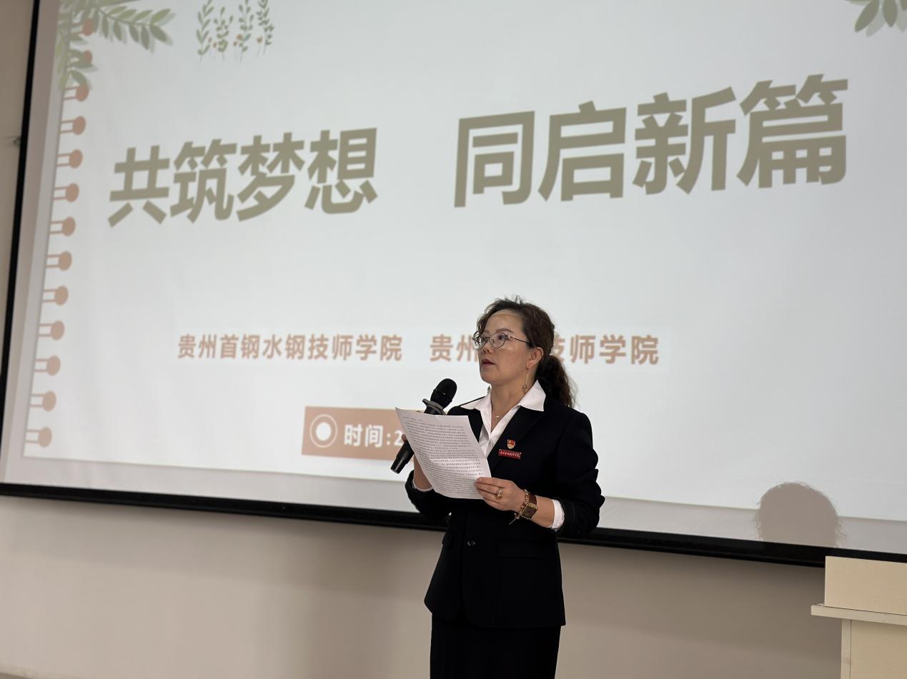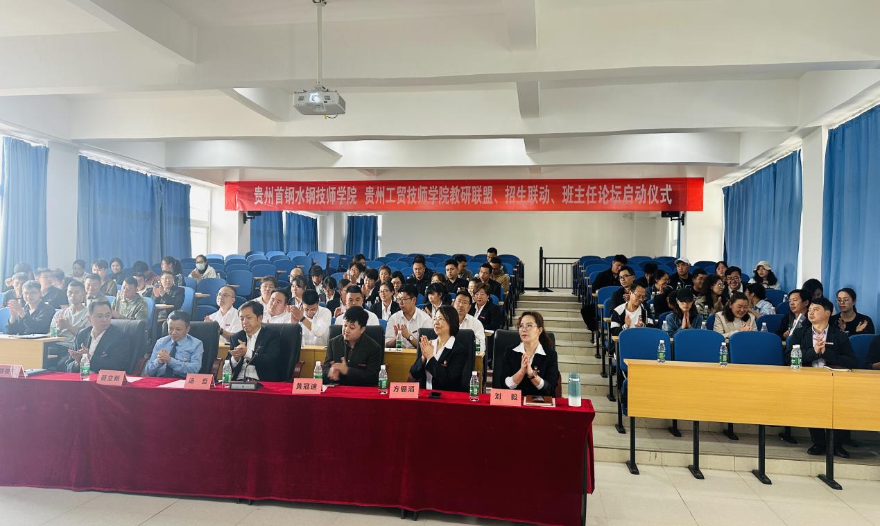 4月19日下午“贵州首钢水钢技师学院、贵州工贸技师学院教研联盟、招生联动、班主任论坛启动仪式”在贵州工贸技师学院明德楼第一阶梯教室举行。贵州省技工教育与职业技能培训协会副会长、贵州首钢水钢技师学院党委书记、院长汤哲;贵州首钢水钢技师学院党委委员、副院长方俪滔;贵州首钢水钢技师学院副院长刘俊杰;贵州工贸技师学院常务副院长黄冠迪;Ky开元集团党委副书记、纪委书记聂立新;贵州工贸技师学院执行院长刘毅出席。两校的教务处长、学工处长、办公室主任、招就处长、培训中心主任、各系部主任及招生骨干和工贸技师学院的全体教师参加了此次启动仪式。仪式由贵州工贸技师学院教务处副处长周婧主持。