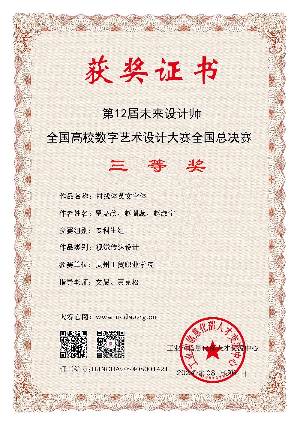 数字艺术设计领域备受瞩目的“2024第12届未来设计师・全国高校数字艺术设计大赛(NCDA)全国总决赛”于近日落下帷幕。在这场汇聚了全国高校精英的盛会中,由艺术学院专任教师文晨、黄克松指导,学生罗嘉欣、赵...